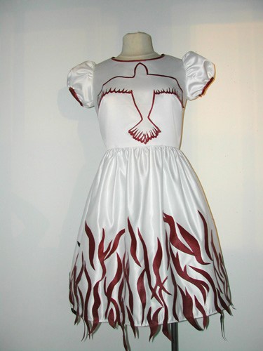 created a new dress entitled “Rebirth”. This dress is completely transparent to show the messages she